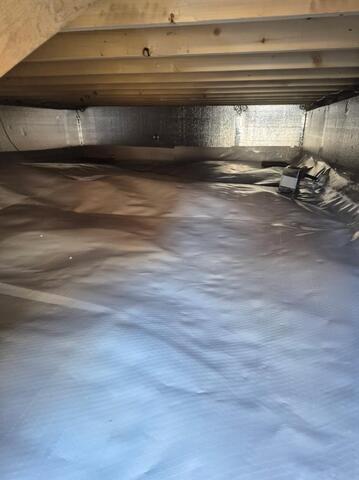 In the before photo, notice the damp and uninsulated crawl space in Jardinville, NB, which posed significant risks, including moisture accumulation and potential mold growth. The homeowner reached out inquiring about effective insulation solutions. As illustrated in the after photo, we implemented our advanced CleanSpace, SilverGlo, and TerraBlock systems to address these issues responsibly. CleanSpace provides a robust encapsulation, SilverGlo expertly insulates with an R-11 rating, and TerraBlock enhances durability and moisture control with its flexible design. This comprehensive solution ensures a clean, dry foundation, safeguarding the home's integrity and efficiency.