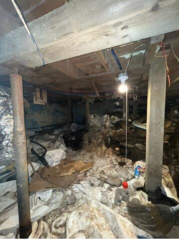 Before our intervention, the crawl space in this New Waterford, NS home was uninviting and inefficient, as you can see in the "before" photo. Notice the transformation in the "after" photo, where we applied our CleanSpace technology to meticulously encapsulate the area, accompanied by SilverGlo insulation panels that work together to provide a clean, efficient, and protected environment below the home. Our expertise ensured a lasting solution and an immensely improved home experience for the homeowner.